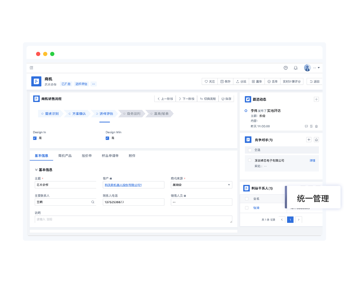 ”圣奧是典型的ToB業(yè)務(wù)銷售型制造公司,DNA天性決定了需要客戶關(guān)系管理、商機管理。在營銷管理上,我們需要知道整個項目每個階段的情況,包括客戶訴求、關(guān)鍵決策人等。沒有數(shù)字化的手段,我們很難掌握到這些數(shù)據(jù)。“