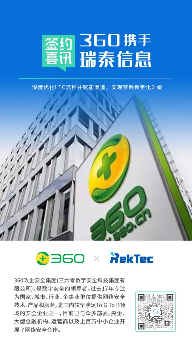 近日,360政企安全集團(三六零數(shù)字安全科技集團有限公司,以下簡稱:360)攜手瑞泰信息,再度聯(lián)手打造360政企安全CRM三期項目。
