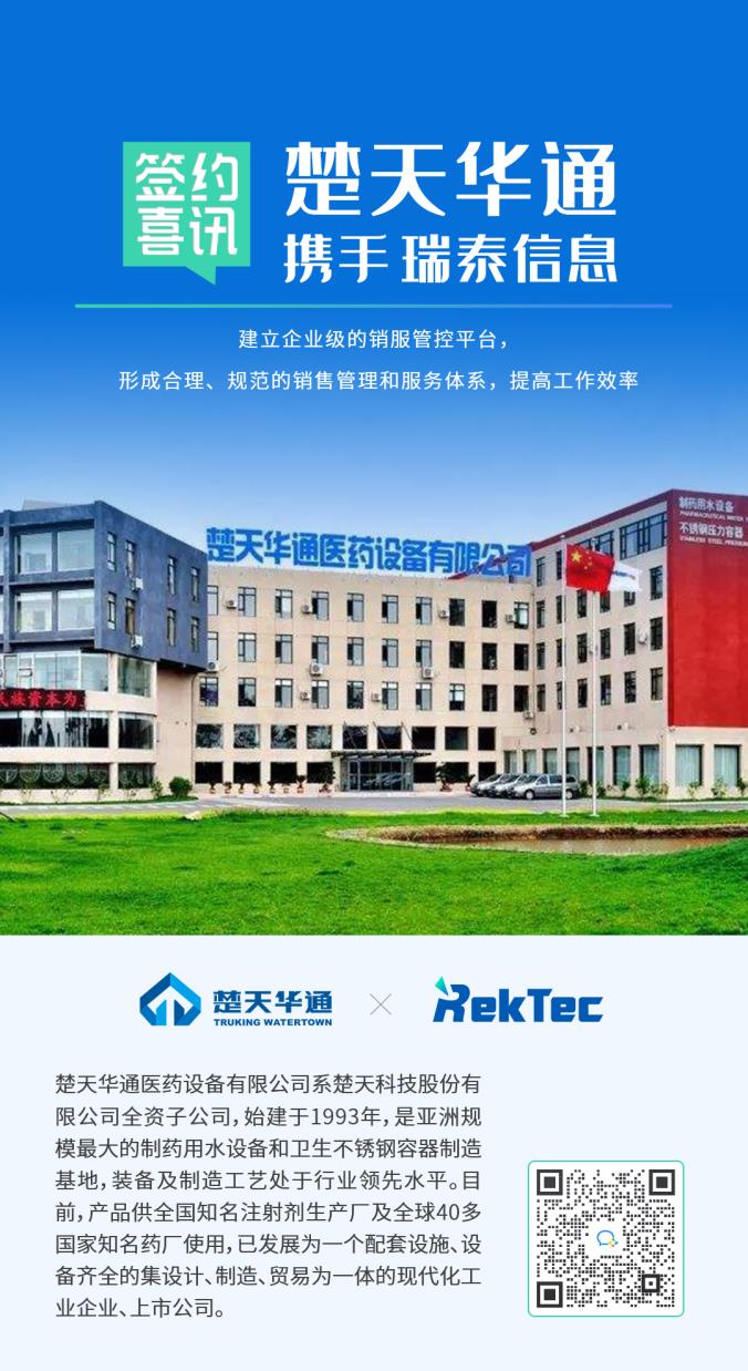 近日,楚天華通醫(yī)藥設(shè)備有限公司(以下簡稱:楚天華通)與瑞泰信息達成深度戰(zhàn)略合作,共建企業(yè)級“銷服一體化”管控平臺,形成合理、規(guī)范的銷售管理和服務(wù)體系,提高工作效率。