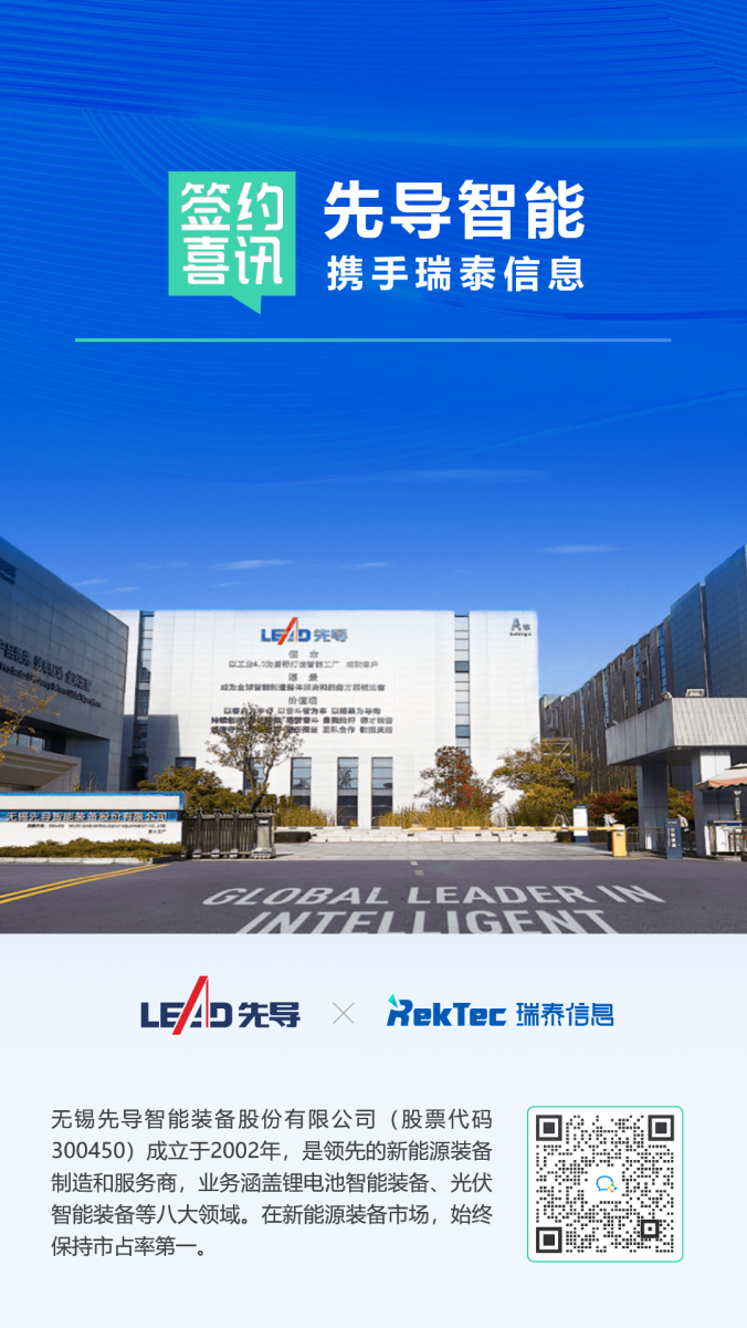 摘要:近日,瑞泰信息與無錫先導智能裝備股份有限公司(以下稱:先導智能)達成合作,將基于瑞泰信息成熟的數(shù)字化建設經驗,聯(lián)袂打造一站式營銷服務管理數(shù)字化平臺。