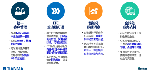 公司消費品部門和車載事業(yè)部原有的系統(tǒng)升級到最新D365平臺,工業(yè)品事業(yè)部的系統(tǒng)在升級優(yōu)化的基礎(chǔ)上,實現(xiàn)客戶管理流程集團化、統(tǒng)一化管理。此外,搭建了多個系統(tǒng)及LTC全流程管理服務(wù),建立集團與客戶的統(tǒng)一管理,在系統(tǒng)優(yōu)化和數(shù)據(jù)完整基礎(chǔ)上,形成了有效的數(shù)據(jù)洞察能力,助力天馬微電子增加銷售效率的同時,也提升的客戶滿意度。